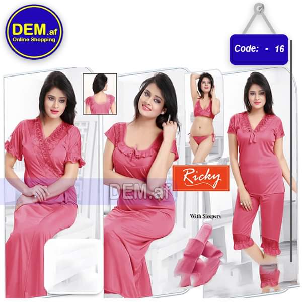 لباس خواب زنانه سیت کامل / تکه ساتن / تعداد چیزی که در تصویر دیده میشود