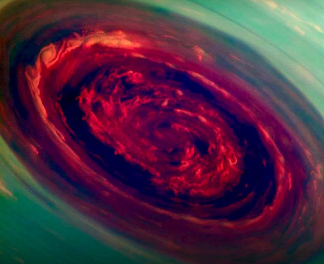 کاوشگر کاسینی این تصویر را از قطب شمال سیاره ثبت کرده که وسعت این طوفان حدود ۲۰۰۰ کیلومتر است و ابرها در لبه بیرونی آن با سرعت بیش از ۵۰۰ کیلومتر در ساعت حرکت میکنند.<...
