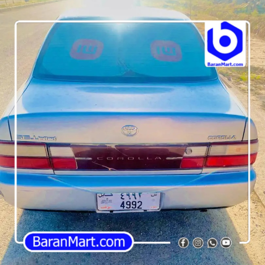 کرولا دست چاپانی دست پاکستانمدل ۹۴رنگ نقرهگیر بکس اتومات پلیت کابل م ماشین پطروس دبلتیار و ویل جدیداز کت شاستی چپ ضمانت قیمت ۲۶۰۰ دالر با اندک جور آمدموقیعت کابل قواع مرکز
