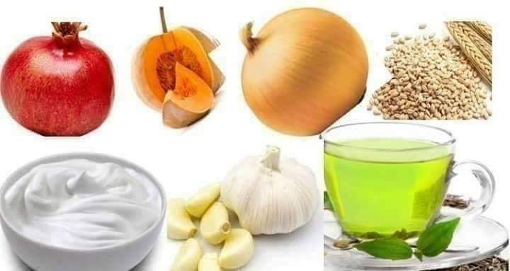 ۱- انار۲- ماست۳- سیر۴- پیاز۵- چای سبز۶- جو۷- کدو