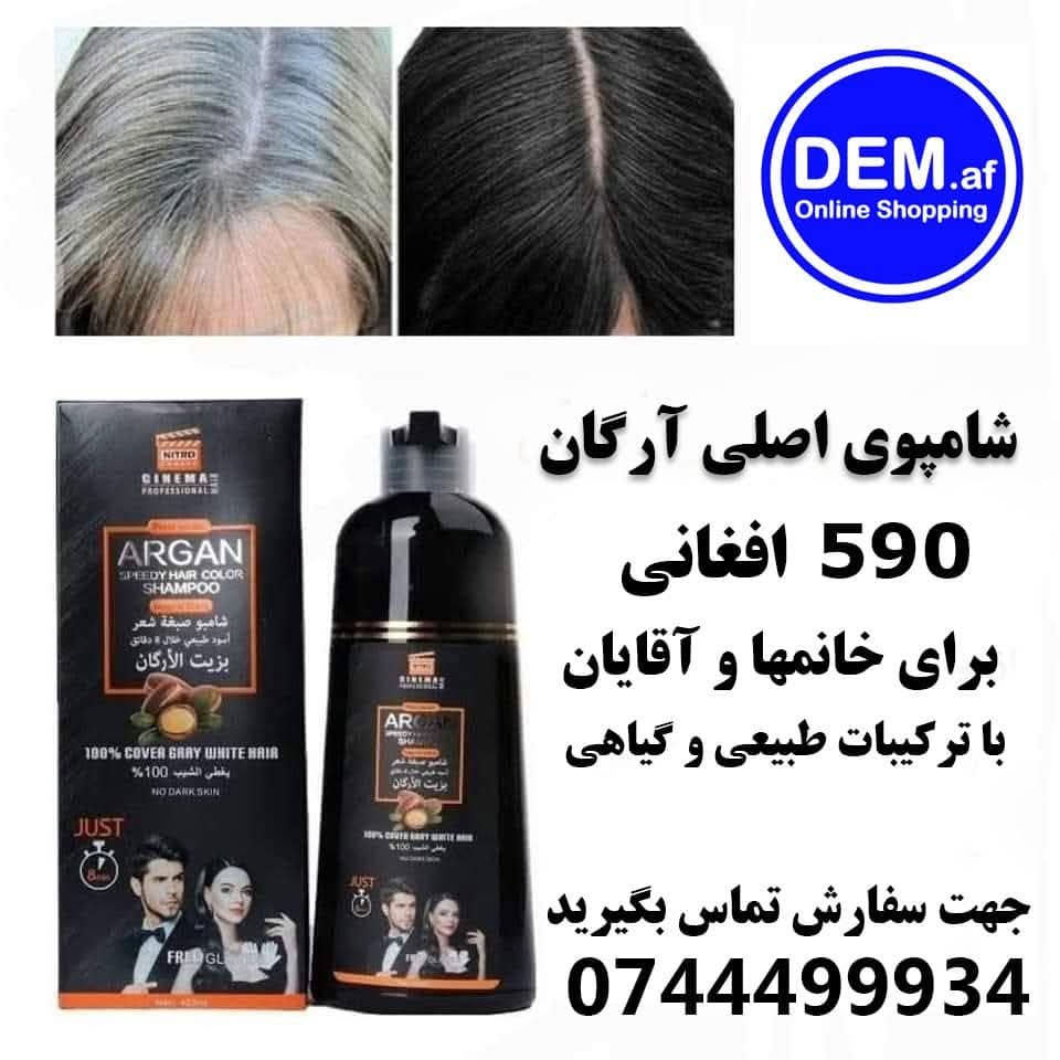 شامپو رنگ موی (ARGAN) در دیم.اف www.DEM.af قیمت استثنایی و نهایی : 590 افغانی 100 % تضمینی 🛵 ارسال در کابل رایگان است 🛵 ارسال در ولایات 100 افغانی هزینه داردسفارشا...